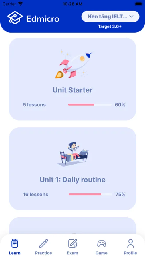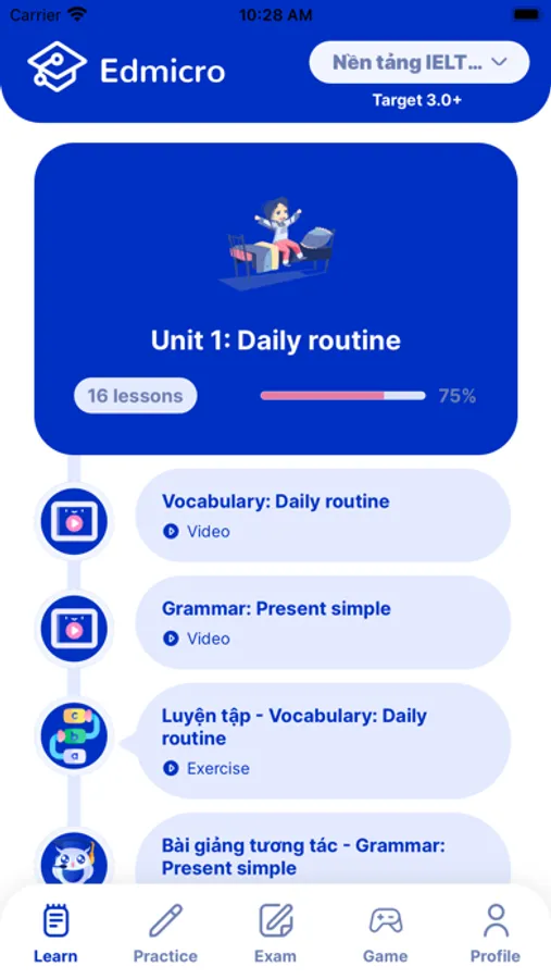 Edmicro IELTS - ứng dụng học IELTS tích hợp AI giúp bạn rút ngắn một nửa thời gian, gấp đôi hiệu quả, tiết kiệm tới 90% chi phí luyện thi IELTS với các tính năng: