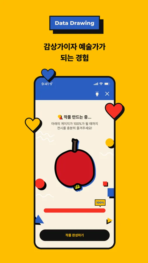 수집된 동선 데이터를 기반으로 관람자 맞춤형 분석 이미지가 생성되며 앱의 "내 작품 보기" 에서 확인할 수 있습니다. 직접 만든 하나뿐인 작품들을 수집하고, 다양한 형태로 뽐내며 특별한 미술관 경험을 누려보세요.