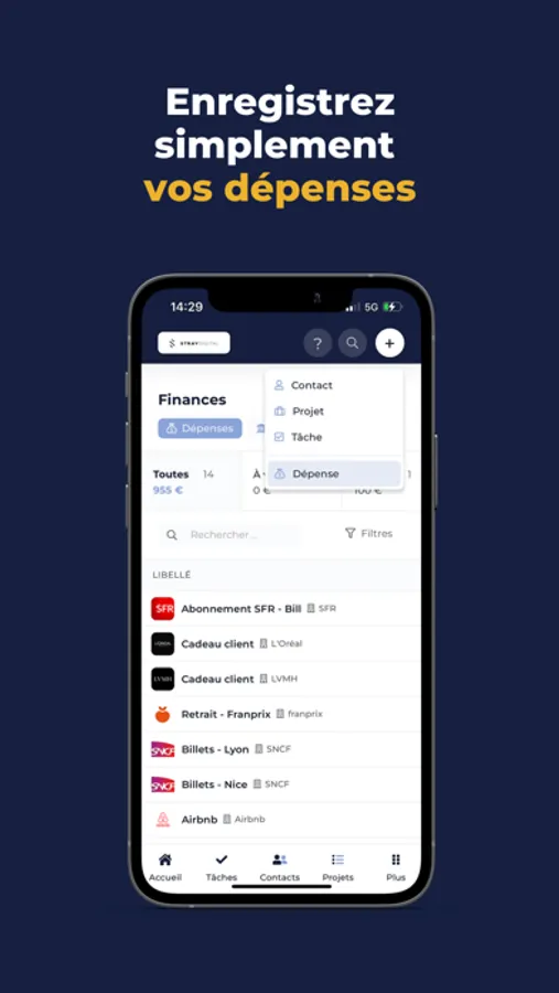 - Gestion financière : dépenses, achats, intégration bancaire, suivi de trésorerie