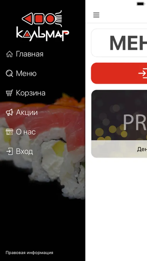 Меню: Смотри актуальные цены, описание и красочные фото блюд. Все здесь. И всегда под рукой. Кальмар – это удобно!