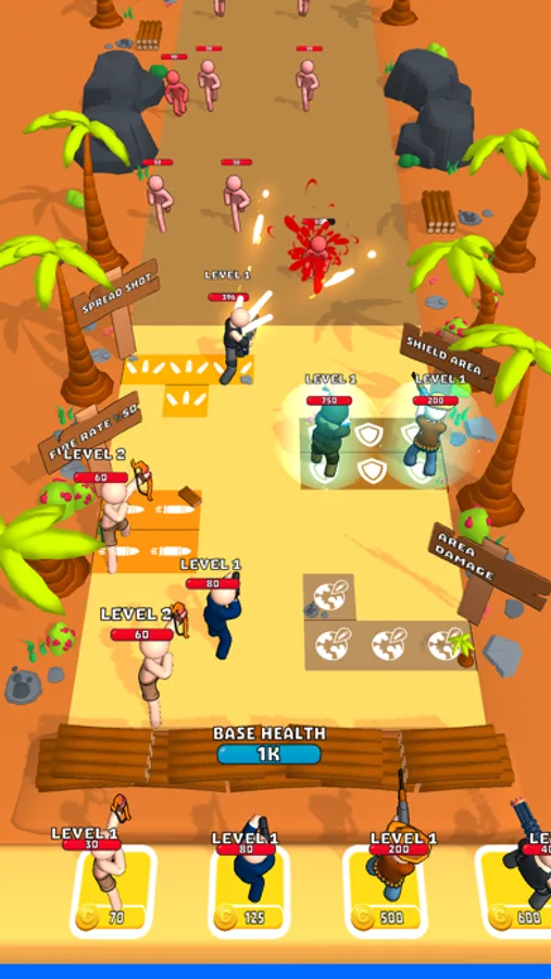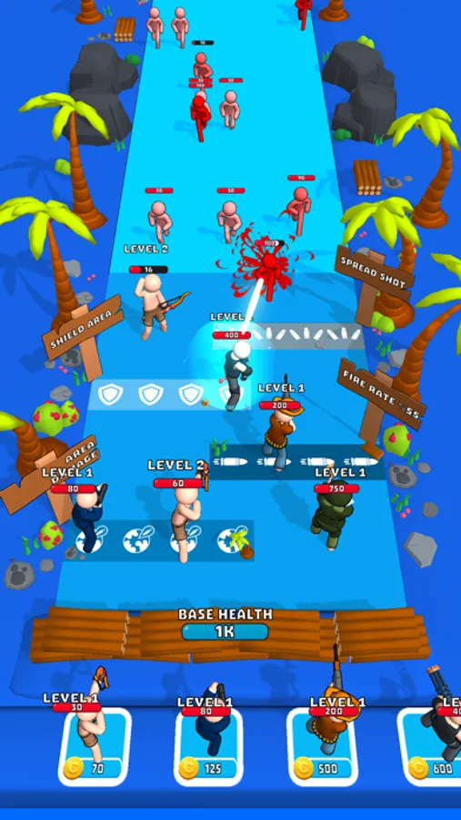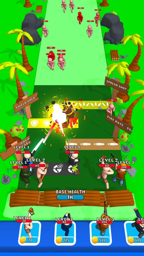 Merge your heroes and defeat all enemies. Upgrade your heroes weapons and special attack areas.