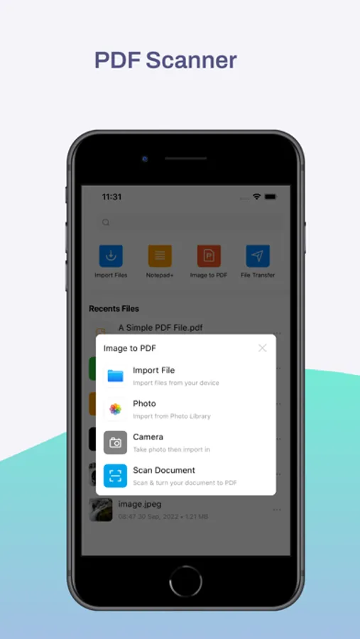 Our app also includes a powerful image to PDF converter. With this feature, you can quickly and easily convert any image file to a PDF document. This is particularly useful if you need to send documents or images to someone who doesn't have the necessary software to open the original file format.