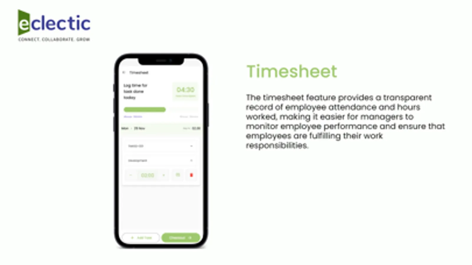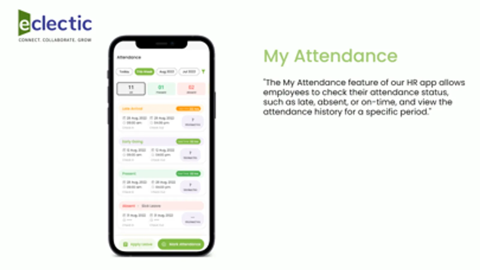 Eclectic is a comprehensive employee management app designed to simplify HR processes. With features such as attendance management, leave management, adjustment management, timesheet logging, and request management, Eclectic makes it easy to keep track of employee activity and ensure smooth HR operations. Real-time notifications keep everyone updated, allowing for more efficient communication and collaboration. With Eclectic, managing employees has never been easier.