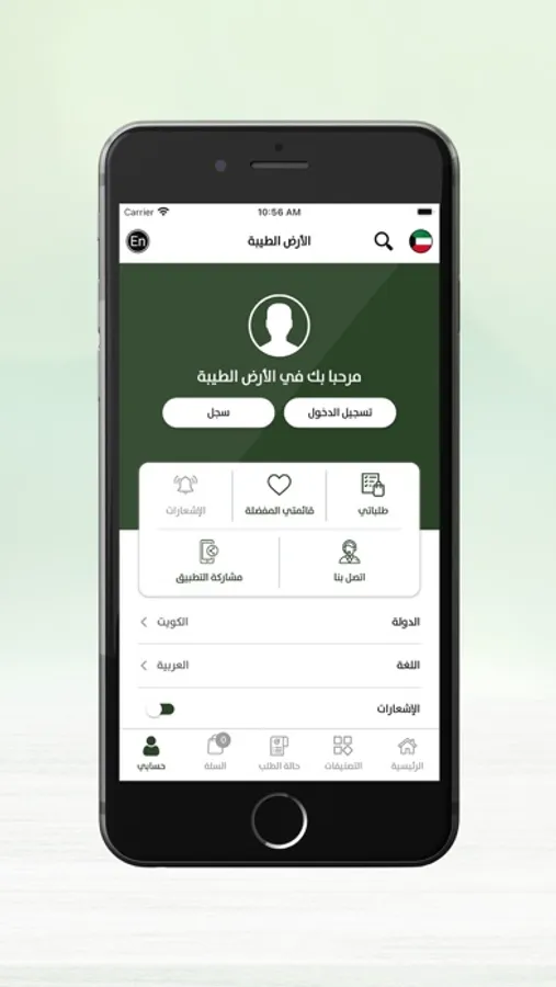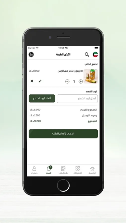 في تطبيق الأرض الطيبة نوفر لك جميع منتجات بلادك من حلويات ، زيت وزيتون ، مكسرات وتمور وغيرها الكثير بجودة عالية . يمكنك تمييز الجودة العالية لمنتجاتنا من خلال الطلب من التطبيق باتباع الخطوات التالية: ادخل إلى التطبيق ثم النقر على التصنيف الذي يناسبك وعندها أضف ما يعجبك من الأصناف إلى عربة تسوقك. بعد ذلك أكمل عملية الطلب باختيار طريقة تحصيل طلبك وآلية الدفع التي تناسبك وأضف جميع المعلومات الأخرى المطلوبة .