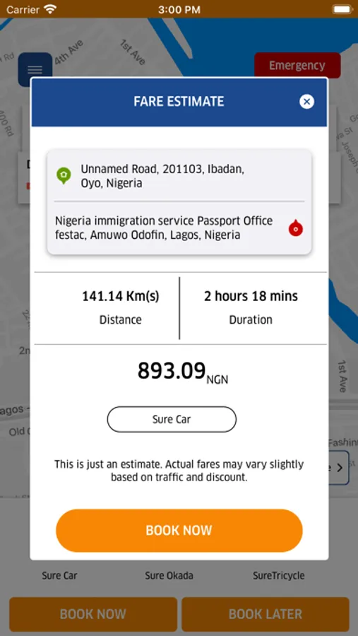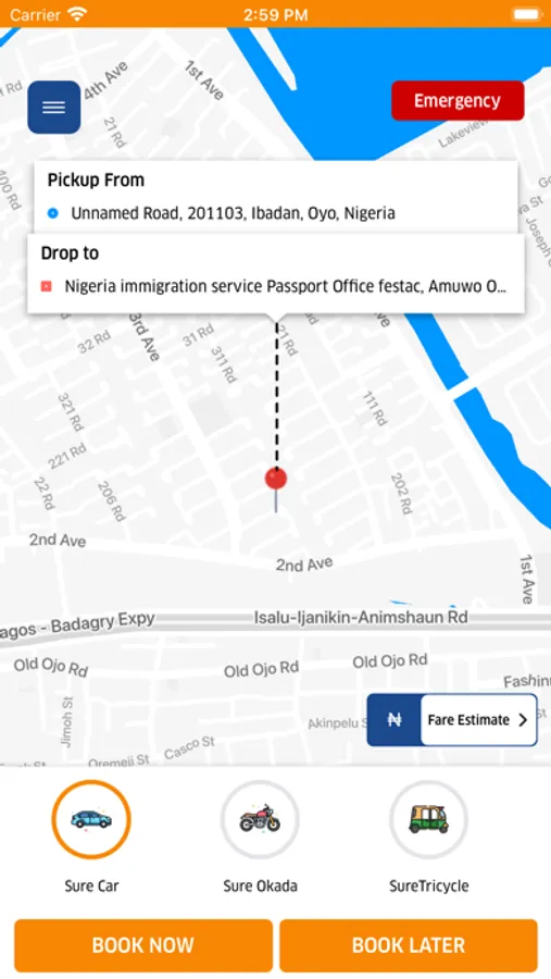 • Choose your type of ride – be it SureCar, SureOkada, or SureTricyles.