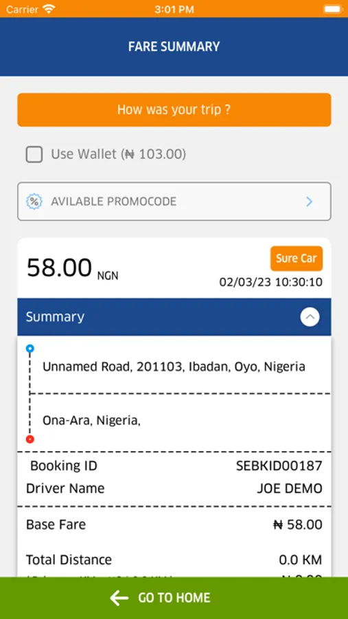 • Secure OTP on every ride. The driver only gets to start a ride after you supply the “Start a ride OTP”.