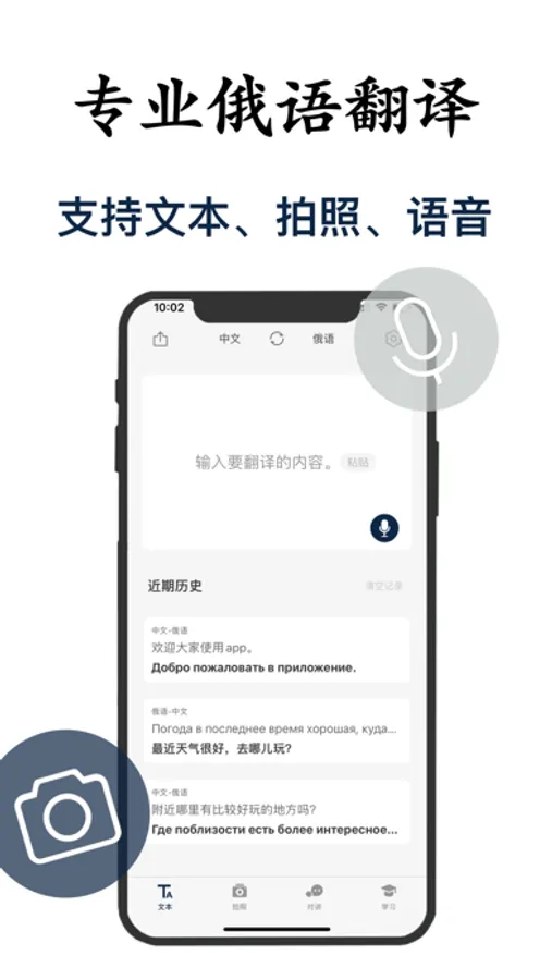 俄语翻译是专门为俄语零基础的用户学习俄语而开发的一款专业&简洁的俄语学习翻译app,地道发音、精准语音识别、准确ocr图片识别能够更好的帮助喜爱去俄国旅行的用户与当地朋友畅享交流,很好的在生活、工作、学习、旅行等方面帮助用户的的俄文翻译助手。