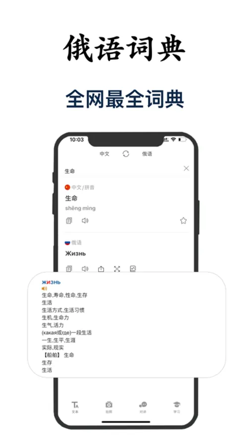 全网精准极速地道的中俄文互译!,一键复制粘贴朗读词义分析等功能。