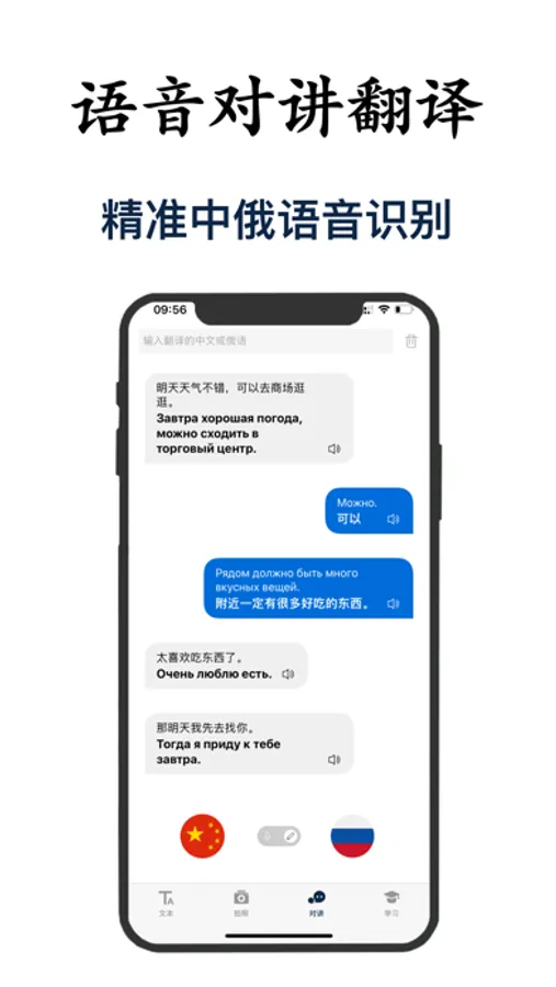 特别受俄国旅游的小伙伴的喜欢,能准确的把语音转化为文本内容,并快速翻译成中文与俄文,支持中俄语对讲互译。