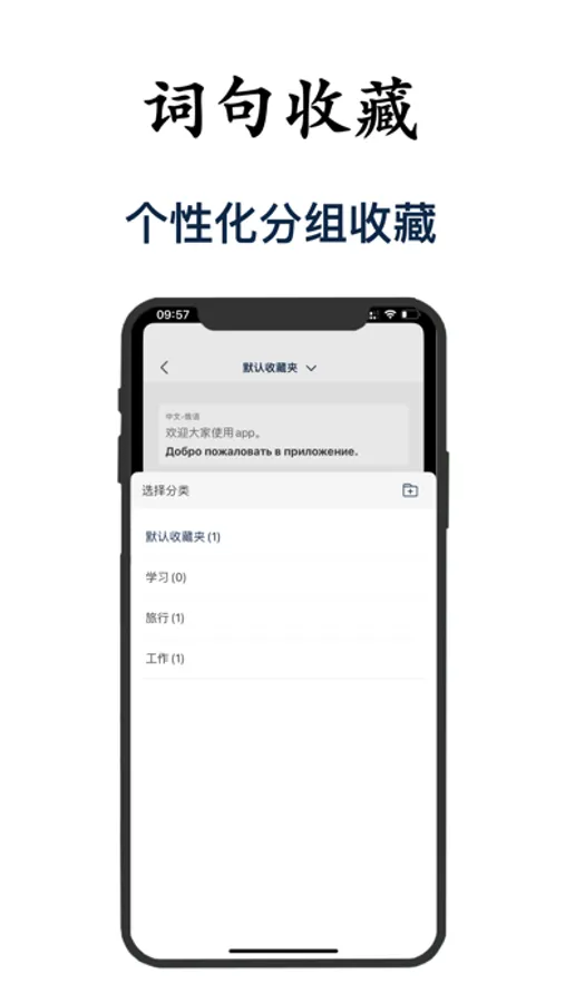 收藏夹支持分组,能很好的区分哪些收藏是学习、工作、旅游、日常等常用的语言,以便下次查看。