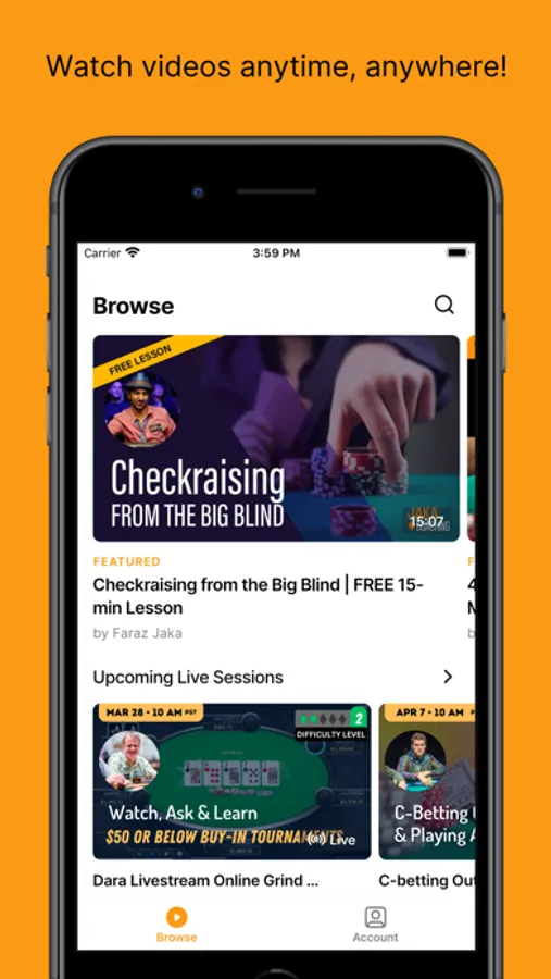 > Watch, Ask & Learn live streams of coaches playing a 4-hour session with hole cards shown while you ask them questions in the chat.