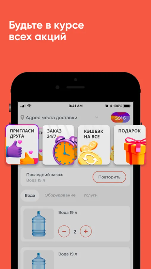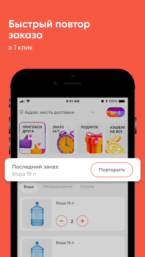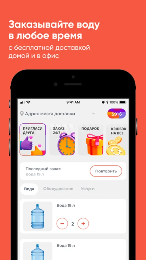 Скачайте приложение Aqua Express на свой смартфон и делайте заказ воды 24/7. Вы сможете повторять заказ нажатием одной кнопки, видеть всю историю покупок и быть в курсе всех акций компании.