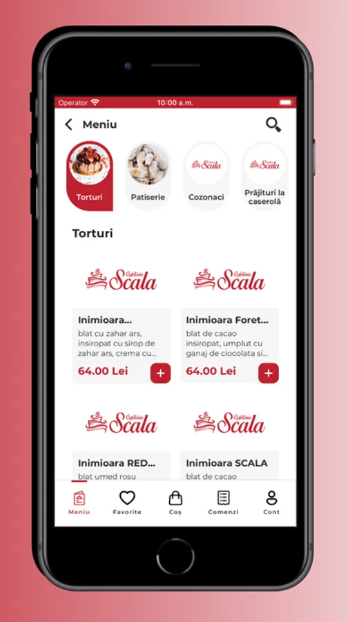 Pentru toți clienții noștri fideli, am creat aplicația Cofetaria Scala. Acum te poți bucura oricând de produsele noastre direct prin intermediul aplicației mobile. Comandă și plătește prin intermediul aplicației. Selectează metoda de livrare preferată, îți livrăm comanda aleasă, poți ridica comanda sau ne întâlnim chiar la jumătatea drumului. De asemenea, te așteptăm în incinta restaurantului nostru pentru a încerca cele mai noi delicatese pregătite pentru tine.