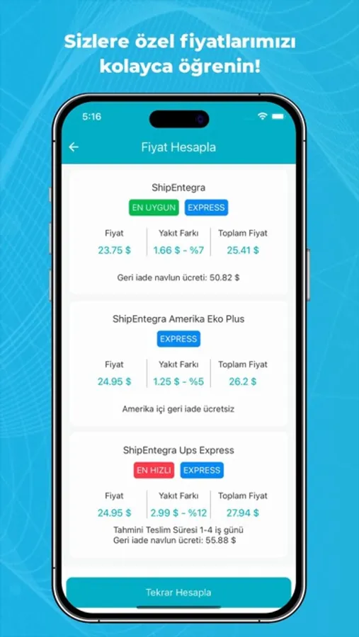 You can see the service options with one click thanks to our software infrastructure while managing your stores' orders. All alternatives are prepared for you with the most reasonable price and estimated delivery date information.