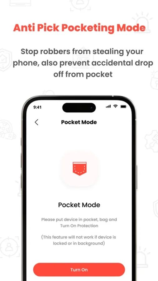 2. Anti Pick Pocketing Mode : Stop robbers from stealing your phone, also prevent accidental drop off from pocket !