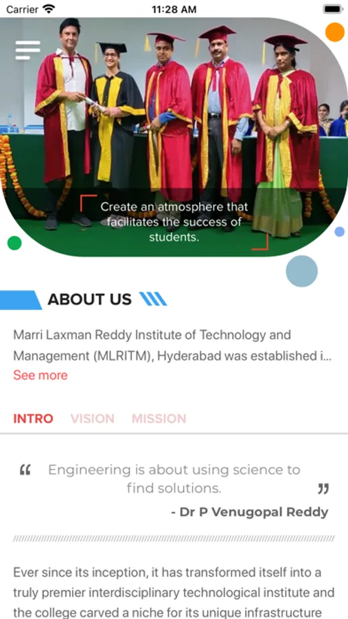 Marri Laxman Reddy Institute of Technology and Management (MLRITM), Hyderabad was established in 2009, by a devoted group of intellectuals, eminent professionals and industrialists, having a long and outstanding experience in educational field with a mission of spreading quality Education among students.