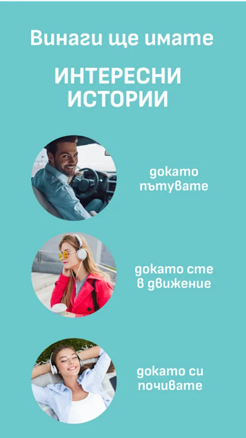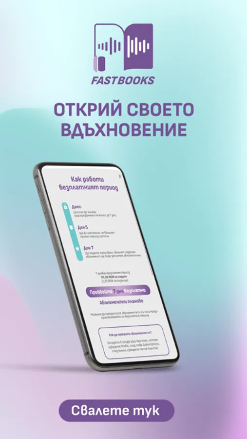 Можете да чуете безплатно заглавията в категорията "Безплатни" и ако приложението ви допада, може да се абонирате, като отидете в друга категория и изберете някое заглавие!