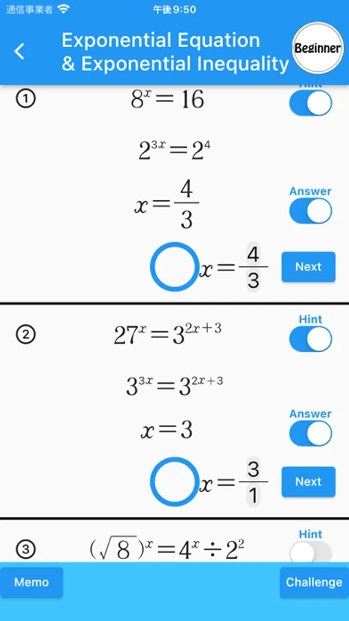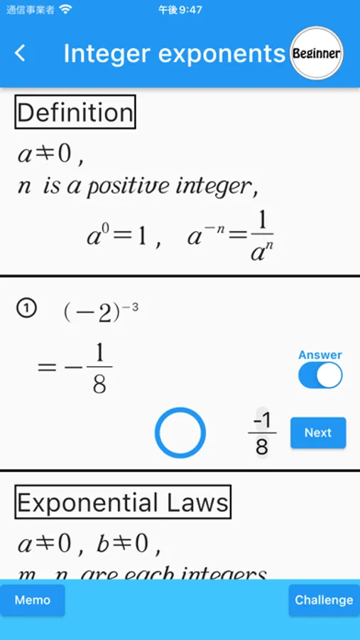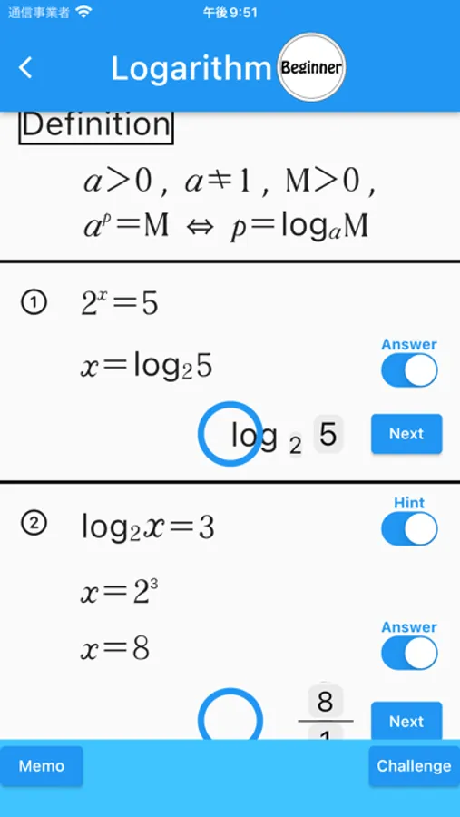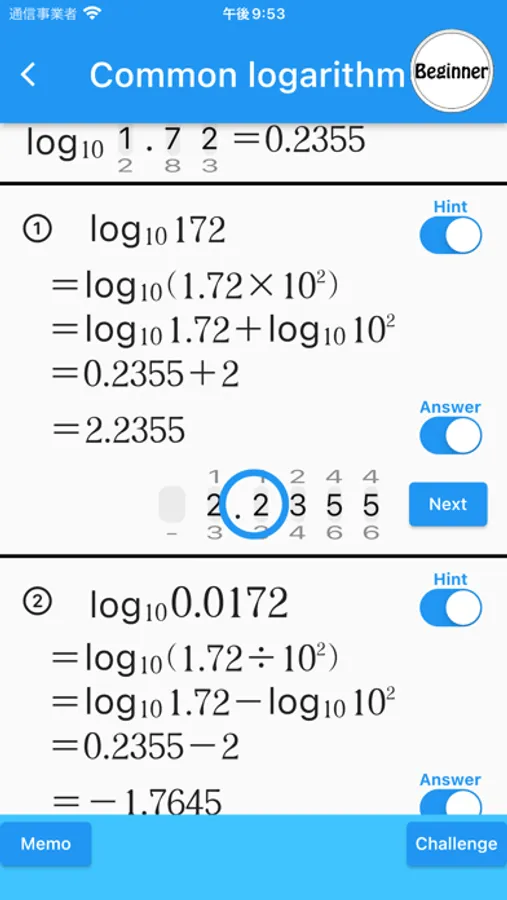 Since the question generation and the correctness judgment of the answer are automatically performed, you can work on the drill learning as many times as you like. You can also see tips and answers.