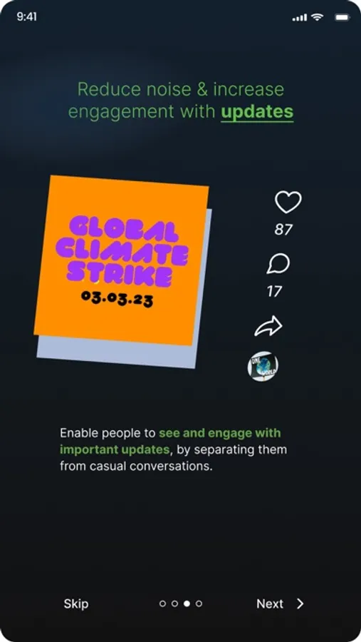 Enable people to see and engage with important updates, by separating them from casual conversations.