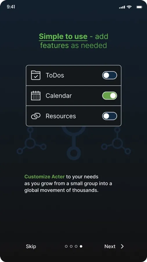 Customize Acter to your needs as you grow from a small group into a global movement of thousands.
