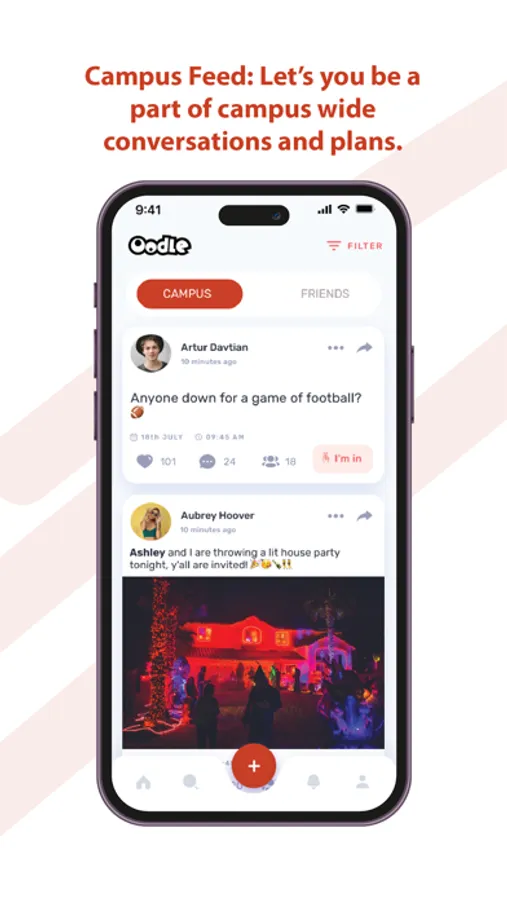 - Oodle enables you to find people to casually hang out with: be it a house party, something as simple as going for a walk or playing a game of soccer.