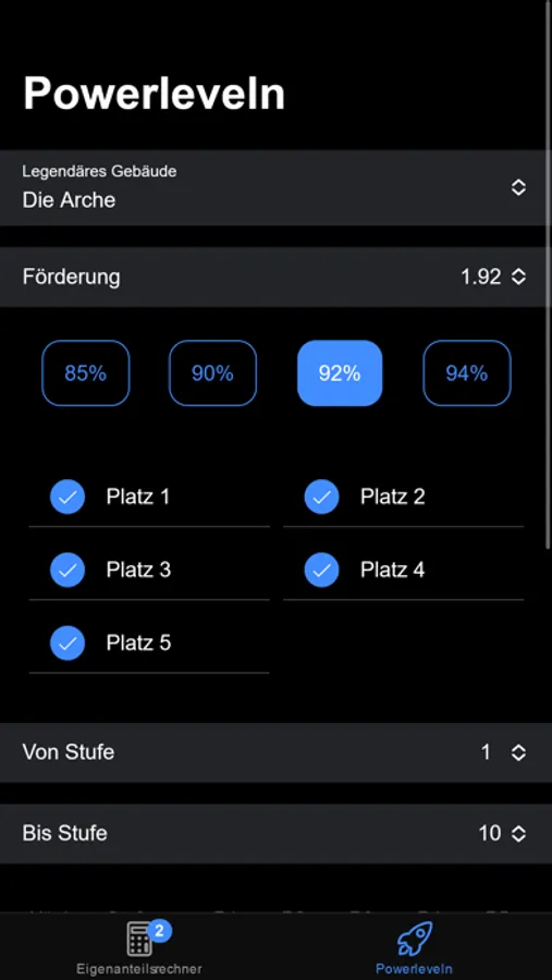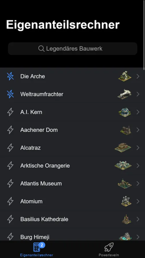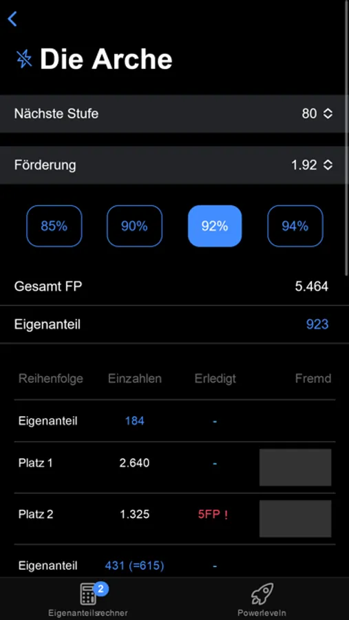 Hier ist ein unkomplizierter Eigenanteilsrechner für Forge of Empires. Die Anwendung enthält keine Werbung und kann offline verwendet werden.
