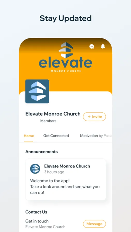 Elevate Monroe Church app is the new central hub for connecting with Elevate from your phone. Just download the Elevate Monroe Church app. You’ll be able to access and share your church’s content and stay up to date with the latest communication. This app is your all-access pass to life-changing worship, messages, teachings and more.