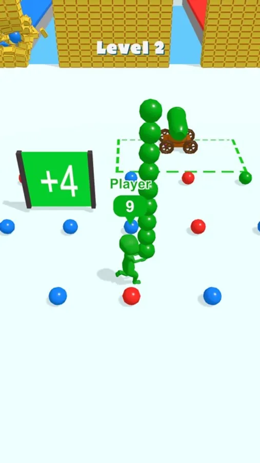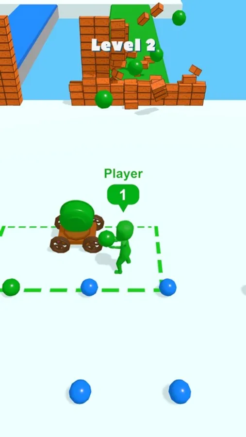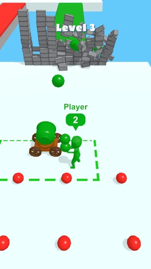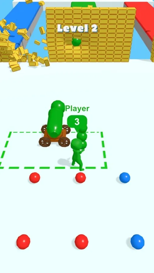You will need to pick up shells and deliver them to the cannon, then use them to destroy the wall in front of you. However, you will encounter enemies who also have cannonballs in their hands. Take the shells from their hands and destroy the walls faster to win!