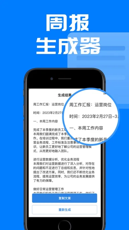一键自动生成日报、周报、月报、汇总报告、会议纪要、文案生成等等!