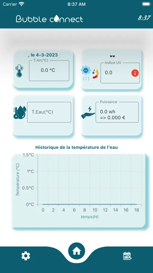 cette application permet de récupérer la température de votre piscine grâce à l'équipement bubbleconnect ainsi qu'à la température et aux rayons UV qui l'entourent.