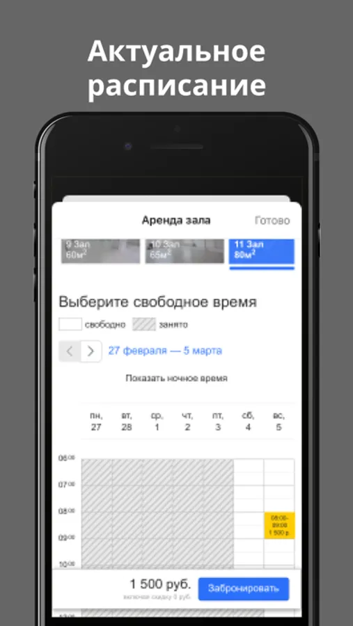 Через приложение можно посмотреть свободное время в залах и оформить бронь.