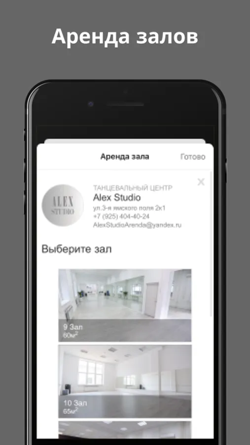 Alex Studio – приложение для быстрого бронирования творческих площадок в центре Москвы.