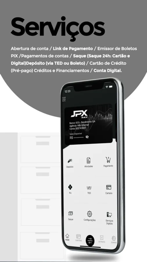 Abra sua conta digital no JPX Pay. Evoluímos cada vez mais para que você tenha a melhor experiência, O JPX Pay oferece uma conta corrente completa e totalmente gratuita!