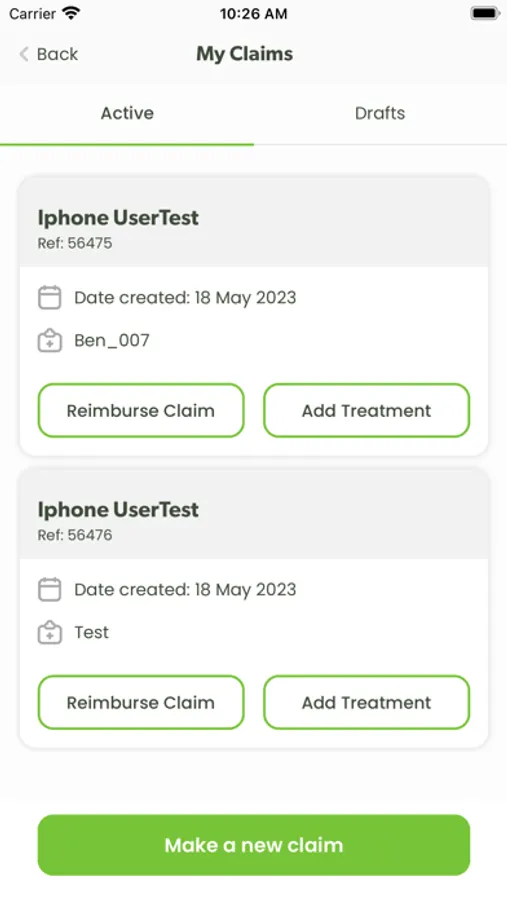 - Make a new claim, view existing claims, submit follow up treatment requests for pre-authorisation, or submit receipts for reimbursement for both you and your dependants under 16