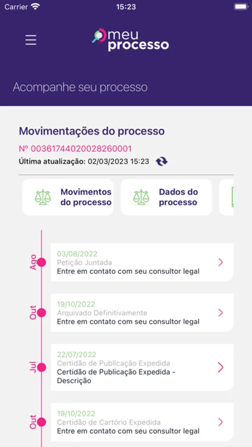 Com o aplicativo “O Meu Processo” você poderá acompanhar o andamento do seu processo no Tribunal de Justiça de São Paulo. Para o advogado(a) mais tranquilidade e certeza que seu cliente poderá acompanhar todas as mudanças importantes do processo e para o cliente uma plataforma amigável e sem os termos técnicos da área jurídica.