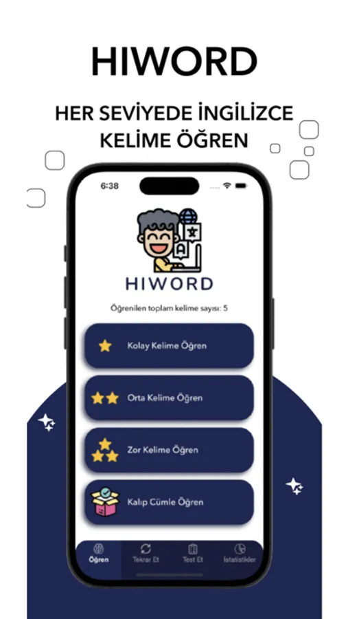 Hiword size binlerce İngilizce kelime sunar ve bunları öğrenmenizi, test etmenizi ve tekrar etmenizi sağlar.