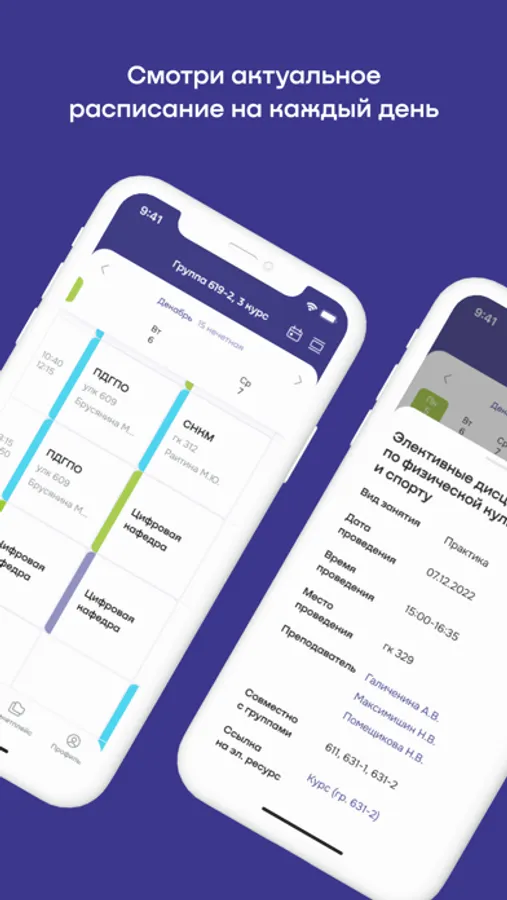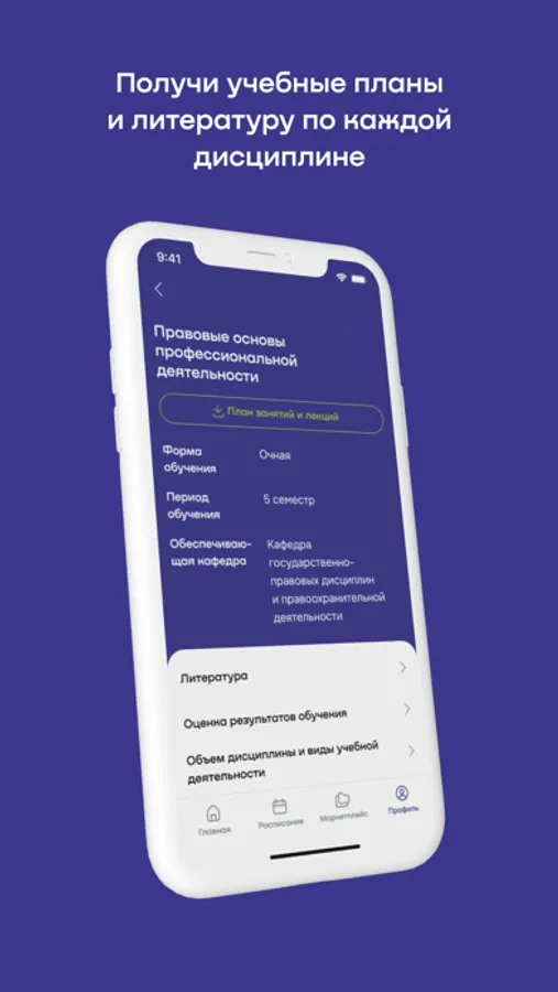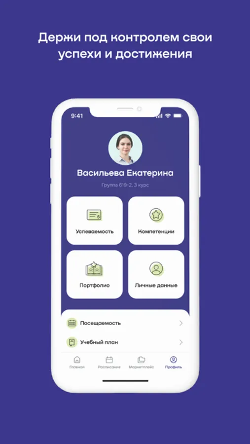 Наше приложение позволяет получить доступ к актуальному расписанию занятий, своей посещаемости и успеваемости, учебному плану, литературе.