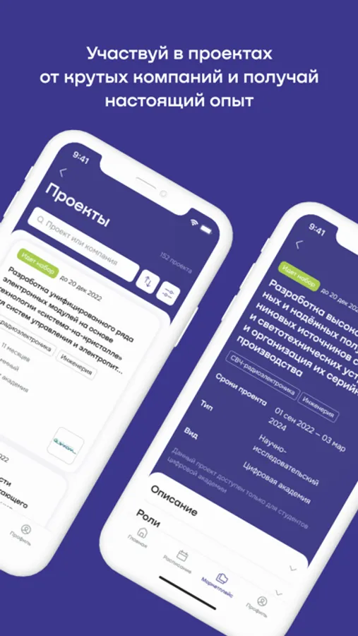 А также в разделе Маркетплейс можно присоединиться к работе над проектом в команде и создавать конкурентоспособные продукты, получать специализацию по современным профессиям в сфере информационных технологий.