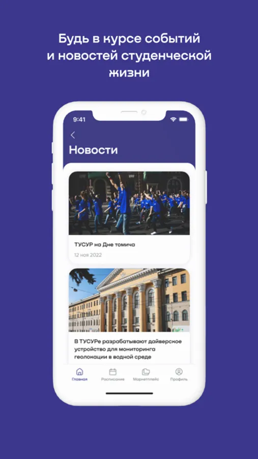 Позволяет быть в курсе предстоящих мероприятий, знакомит с новостями ВУЗа, фото и видео материалами с прошедших событий.