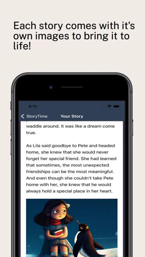 StoryTime let's you and your kids create memories as you come up with new, unique stories each night at bed time. You can save all your stories to come back to later or you can create new ones each time. We use the best and latest artificial intelligence to provide you with your stories and the accompanying art work!