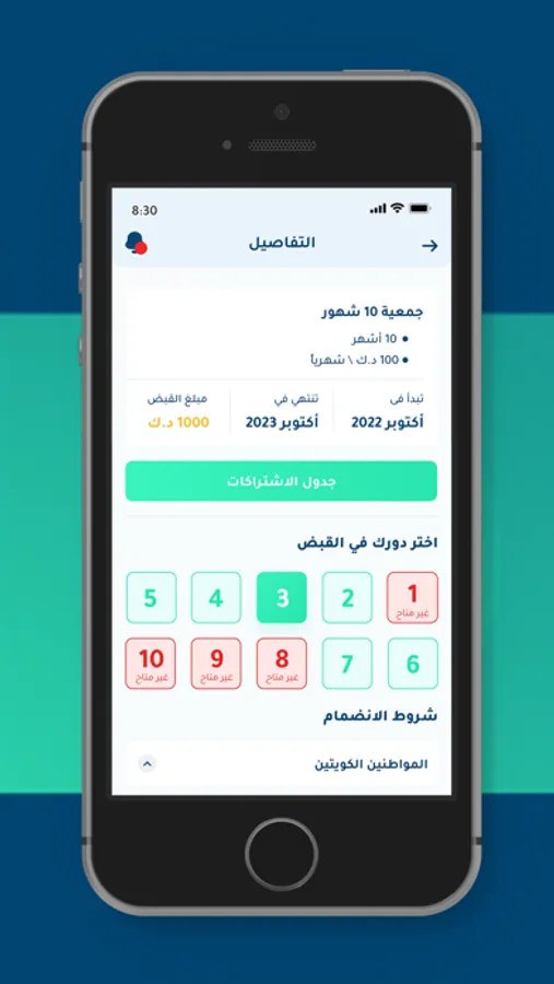 يتيح التطبيق للمستخدمين الاشتراك في مجموعات ادخارية مع أصدقائهم أو أفراد أسرتهم أو زملائهم في العمل وتحديد مبلغ محدد يريدون ادخاره كمجموعة. يمكن للمستخدمين اختيار فترة زمنية معينة للادخار ، مثل 5 أشهر أو 7 اشهر او 10 اشهر ، والتي سيتم خلالها جمع المبالغ وتوزيعها على جميع أعضاء المجموعة بشكل منتظم.