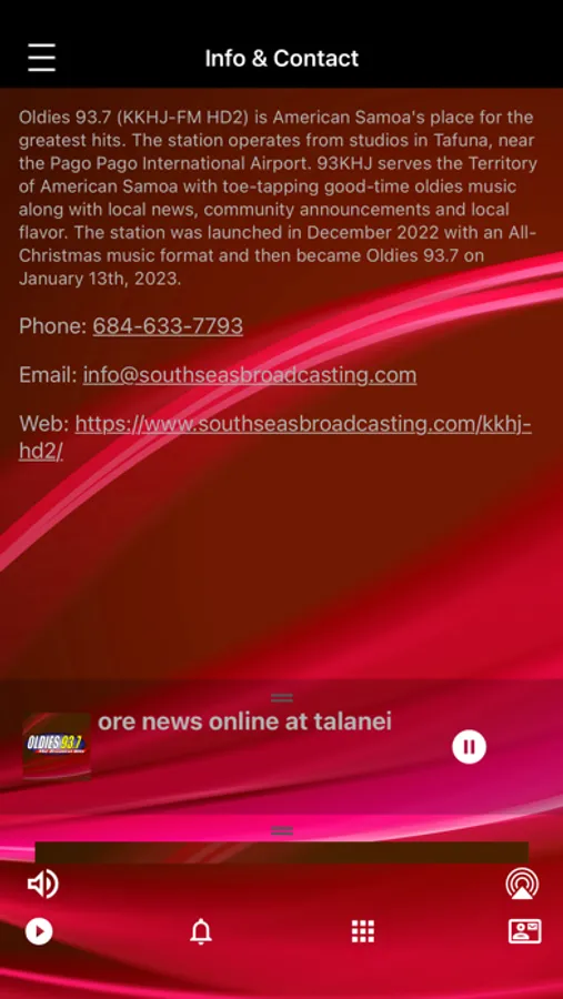 Hear Oldies 93.7 in American Samoa for your favorite oldies music. Live worldwide 365 days a year, Oldies 93.7 is American Samoa's first choice for toe-tapping feel good music. The station also features local and national news, local weather and nationally syndicated programs. You can also listen to our sister stations 93KHJ (KKHJ), V103 (WVUV) and 104.7 The Beat (KKBT).