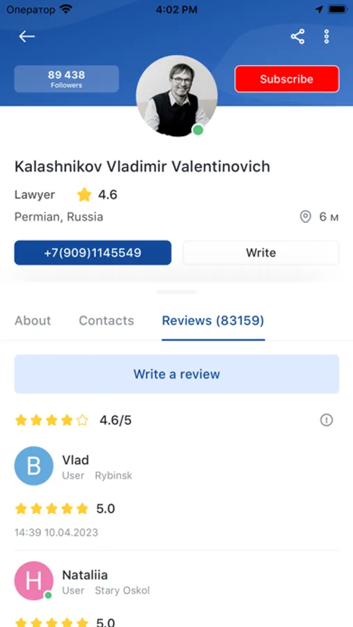 The advantage is given to lawyers with the highest rating, which consists of the quality of answers to questions. When the user opens the application, on the main page he sees a list of lawyers who are next to him (taking into account geolocation) and with the highest rating at the moment. The more and better a lawyer answers questions, the higher his rating and the more often users see his ads on the main LSN page, which means they turn to him for personal paid consultations.
