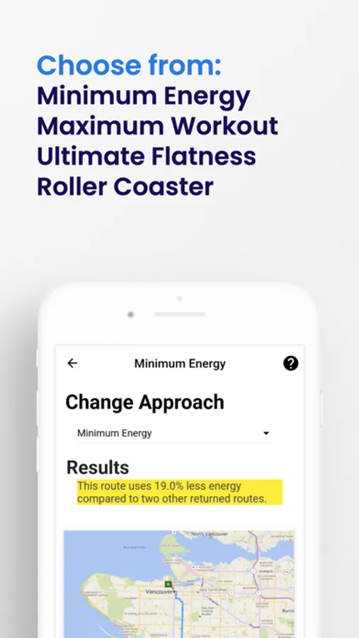 a) Minimum Energy - This approach finds the best of the routes for conserving energy. For example, you may want to save gas while driving.