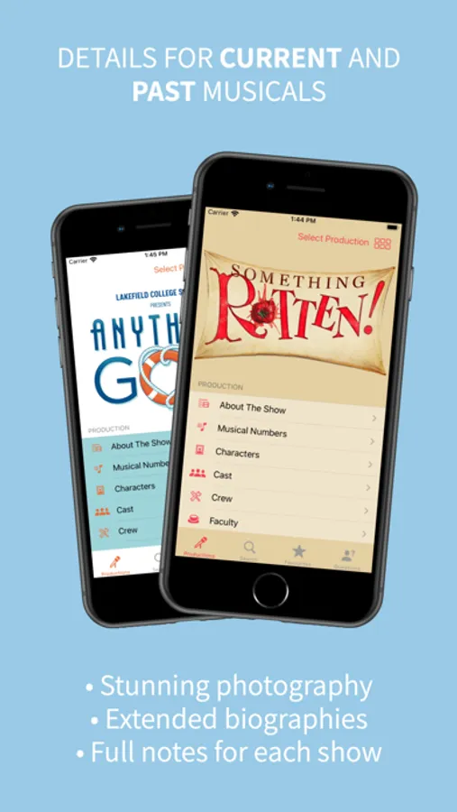 • Browse and search through character, cast, crew, musician, and faculty profiles and biographies