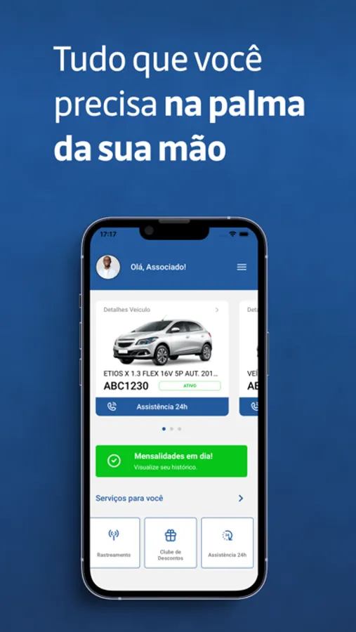 Nosso app possui diversas funcionalidades e serviços, colocando o associado a poucos segundos do que deseja encontrar ou solicitar.