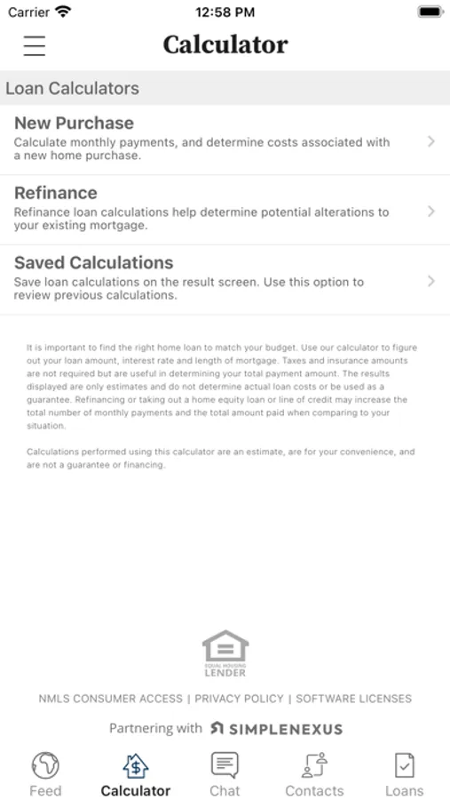 The calculations provided by the Simple Loan App are useful in giving you an idea of what homeownership might mean for you. However, please be sure to contact your Loan Officer for a customized solution tailored to your specific financial situation, needs, and goals. Your Loan Officer can also assist you with any questions you have about your loan and the loan approval process.
