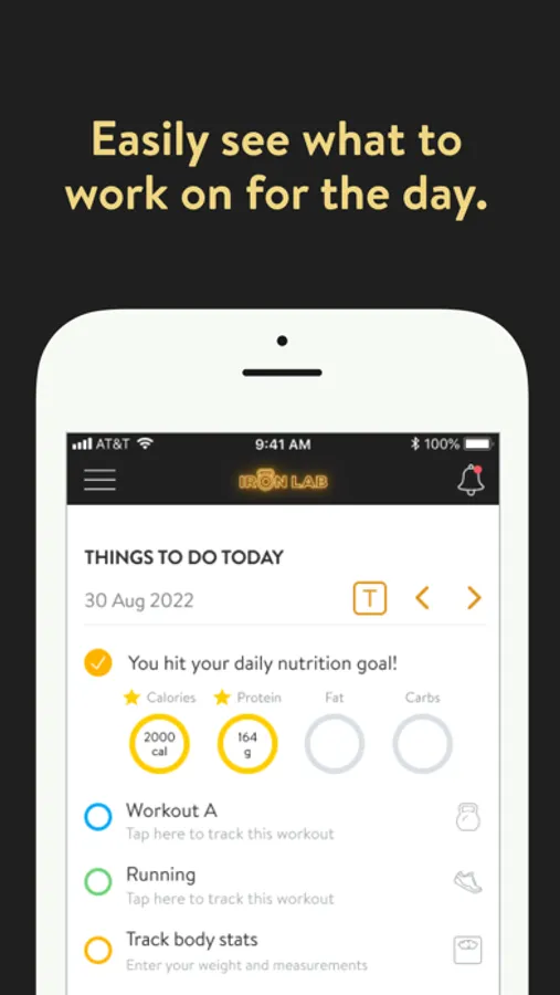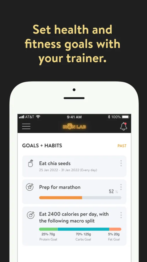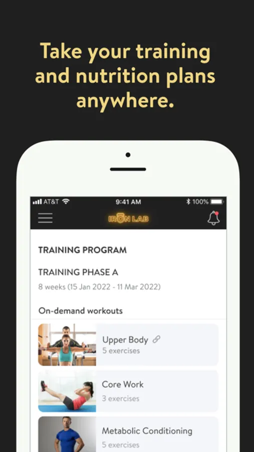 With the IRON LAB App, you will have access to workout & nutrition programs designed specifically to help you reach your fitness and health goals! You can follow & track your workouts, your nutrition, your lifestyle habits, measurements and results–all with the help of your coach.
