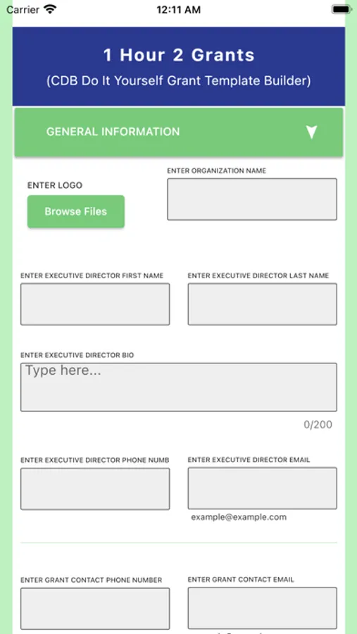 The One Hour Two Funds App will collect personal and organizational information as part of the intake form process. This information will be kept confidential and will not be shared with third parties without the user's explicit consent. The app will comply with all applicable privacy laws and regulations.