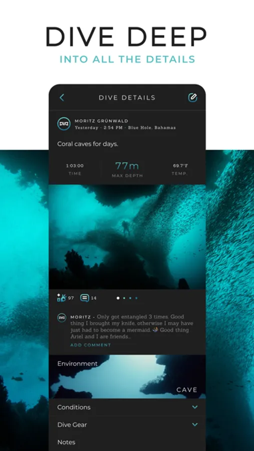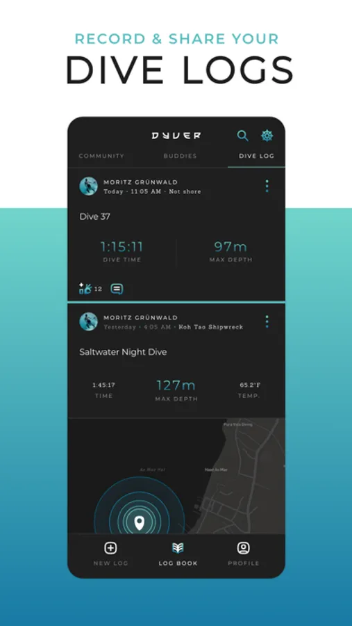Sharing – Dyver is also a social platform. It allows you to share your epic adventures with your other dive buddies and keep up with their latest dives as well.